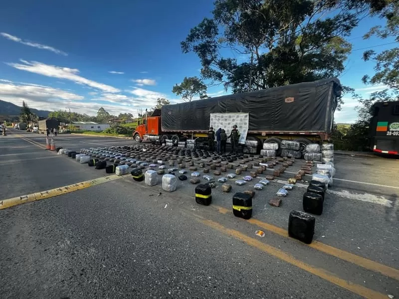 –En la vía Remolinos-Puente El Indial (Manizales), en desarrollo de la ofensiva contra el multicrimen y el delito, la Policía Nacional incautó 7 toneladas y media de marihuana camufladas en un tractocamión el cual tenía como destino final la ciudad de Barranquilla. El cargamento de droga, que pertenecía al llamado estado mayor central de las disidencias de las Farc de alias Iván Mordisco.