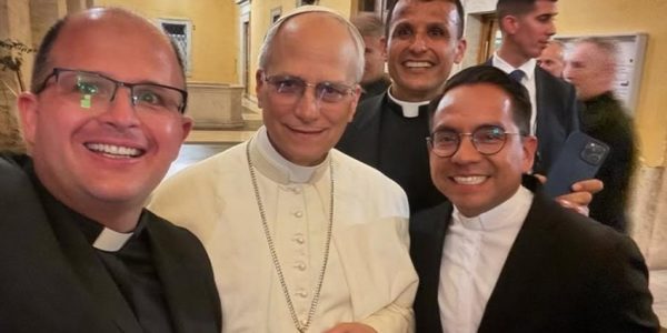 –(Papa León XIV, vestido de blanco, con sacerdotes con los que se hizo un selfi en el Vaticano/José Luis González/ Instagram). El periodista Andrea Tornielli realizó en 2023 para los medios vaticanos una entrevista al Papa León XIV, que por…