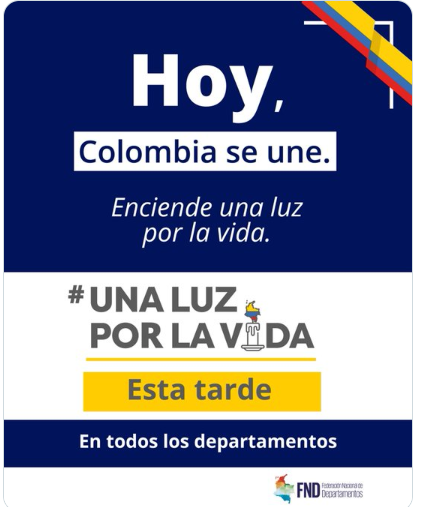 Velatón a las 5 p.m. en las capitales de todos los departamentos del país ‘Una luz por la vida, la unidad y la Convivencia» contra la violencia, el odio y la polarización.