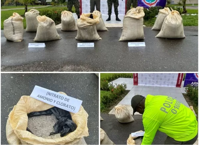 Este material que contenía una mezcla altamente volátil de nitrato de amonio con ACPM, el cual era utilizado para la fabricación de explosivos artesanales en hornos rudimentarios.