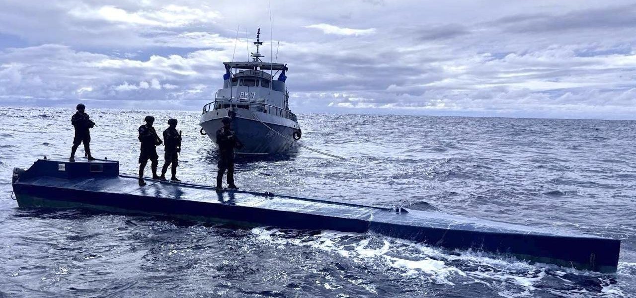 Interceptan en aguas del Pacífico de El Salvador semisumergible con 1.3 toneladas de cocaína tripulado por un colombiano y dos ecuatorianos