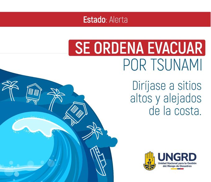#Atención | Tras el sismo de magnitud 8.8 Mw en #Kamchatka (#Rusia), de acuerdo con @Dimarcolombia se prevén corrientes fuertes y olas de #tsunami en la costa Pacífica colombiana.
