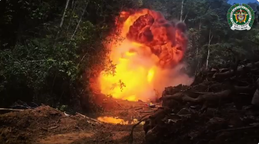 –En los municipios antioqueños de Buriticá, Remedios, Vegachí y Yali, la Policía Nacional frenó siete frentes de explotación de minería ilegal y destruyó infraestructura valorada en cerca de 1.500 millones de pesos, perteneciente al ‘clan del golfo’.