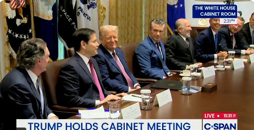 .@SecRubio at the Cabinet meeting: "For the first time in the modern era, we are truly on offense against organized cartels that are pumping poison — killer poison — into our cities, and that's a team effort." pic.twitter.com/02Sk93C5ez