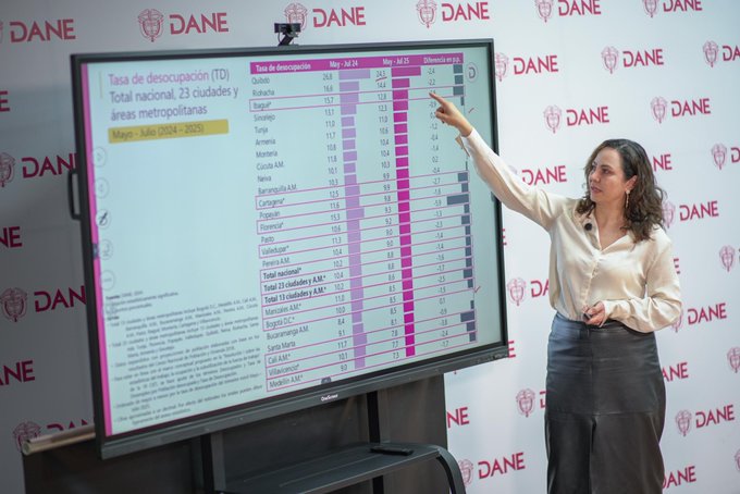 –(Foto directora del DANE Piedad Urdinola).En julio pasado la tasa de desocupación en Colombia bajó a 8,8%, lo cual representa una disminución de 1,1 puntos porcentuales frente al mismo mes del año anterior, cuando marcó 9,9%. Esta tasa es la más baja de toda la serie desde 2001 para julio, precisó en su informe el Departamento Administrativo Nacional de Estadísticas, DANE.