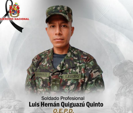 De acuerdo con el reporte oficial, el soldado profesional Luis Hernán Quiguazu Quinto, fue privado de su libertad mientras se encontraba de permiso visitando a su familia, y posteriormente fue hallado muerto en zona rural del municipio de Nátaga, en territorio huilense.
