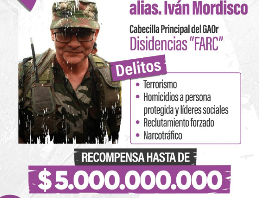 Ofrecemos hasta $5.000 millones por información que nos permita dar con el paradero del narcoterrorista alias ‘Mordisco’ y hasta $4.500 millones por alias ‘Marlon’. Delincuentes que solo le traen dolor y muerte… pic.twitter.com/LifU71PANw