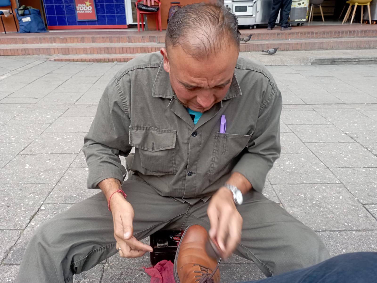 Andrés Silva, es un lustrador o embellecedor de calzado que ha trabajado cerca de 30 años en la calle 72 con carrera 12, desde allí ha sido testigo de los cambios que ha tenido este punto del norte de Bogotá, la transformación urbana, los hábitos de los capitalinos y cómo esta actividad ha dejado de ser una necesidad para quienes por allí transitan, porque tener los zapatos brillantes eran la orden del día, «estar pulidos», como lo describe con nostalgia.