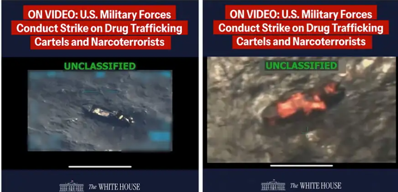 Donald Trump publicó el viernes en su cuenta de la red Truth Social un video que muestra el ataque militar estadounidense contra una presunta lancha del narcotráfico sin precisar cuándo tuvo lugar el ataque ni de dónde provenía la embarcación. El mandatario estadounidense sólo dijo que ocurrió en el área de responsabilidad del Comando Sur de Estados Unidos, que incluye América Central y América del Sur, así como el Caribe. (Información DW).