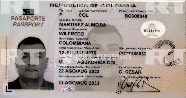 Entre los documentos se encuentra un pasaporte colombiano y un extracto bancario ucraniano a nombre de Wilfredo Martínez Almeida, de 46 años; un permiso de conducir del estado de Oregón a nombre de William Francis McGrath, así como un permiso de circulación polaco a nombre de Grzegorz Rafal Wasilewski. Hasta la fecha se desconoce su función militar, la hora y las circunstancias de su muerte.