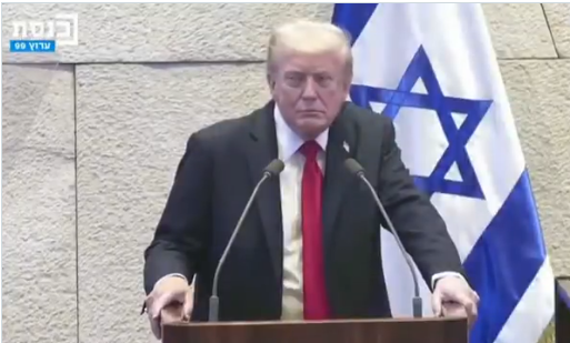 El discurso de Trump fue interrumpido brevemente cuando un miembro de la Knesset desplegó un cartel pidiendo el reconocimiento de Palestina.