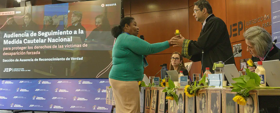 –La Jurisdicción Especial para la Paz (JEP) reafirmó su compromiso con las víctimas de desaparición forzada en audiencia de seguimiento a la Medida Cautelar Nacional convocada por la Sección de Ausencia de Reconocimiento de Verdad (SARV), llevada a cabo el pasado fin de semana.