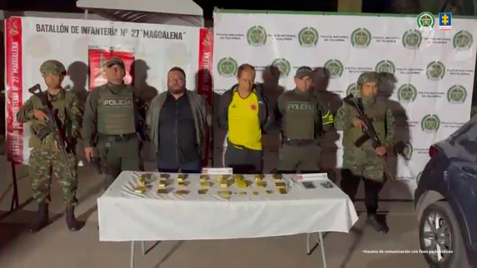 En la diligencia fueron capturados Andrey David Murcia Dávila, conductor del vehículo en el que eran transportados los lingotes ocultos en el tanque de combustible; y su acompañante, identificado como Fernando Andrade Delgadillo Rodríguez.