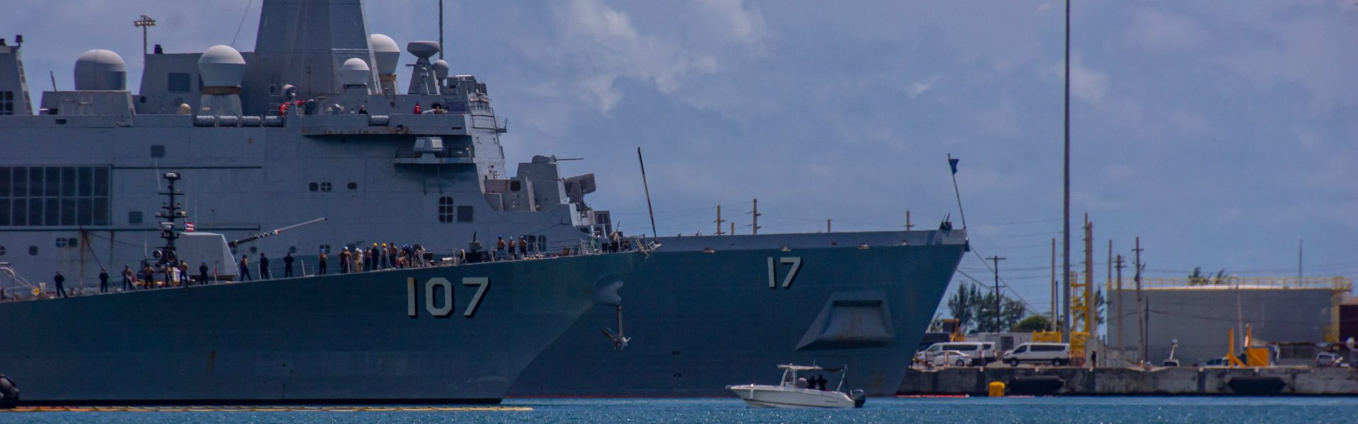 The USS Gravely edges towards the Port of Port-of-Spain, starting a five-day trip to Trinidad. There has been scepticism in some quarters surrounding the US warship's arrival, however, Prime Minister Kamla Persad-Bissessar has assured benefits will be derived.