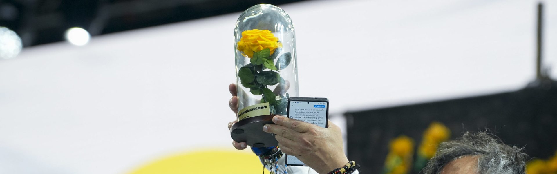 “Y la energía de estas miles de personas, que siendo militantes de la Unión Patriótica y teniendo sueños en los años 82 al año 2000, esas energías otra vez están aquí multiplicadas por miles. Ahora somos millones, no nos pueden asesinar, ahora somos el corazón, la esperanza del pueblo de Colombia. Ahora somos una bandera erguida y no vamos a dejar que la insulten, no vamos a dejar que la escupan en sangre, vamos a levantarnos en dignidad con las manos de millones y millones”, concluyó.