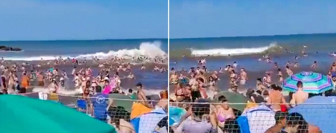 El fenómeno, llamado meteotsunami, se registró en horas de la tarde mientras la playa estaba llena de turistas, cuando de repente una ola de cinco metros tomó por sorpresa a los visitantes y los arrastró con fuerza.