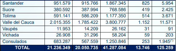–Un total de 41.287.084 colombianos están habilitados para ejercer su derecho al voto en Colombia y el exterior durante las elecciones de Congreso de la República, que se realizarán el próximo 8 de marzo. De los ciudadanos aptos para sufragar, 21.236.349 son mujeres y 20.050.735 son hombres, quienes podrán votar en 125.259 mesas, distribuidas en 13.746 puestos de votación.