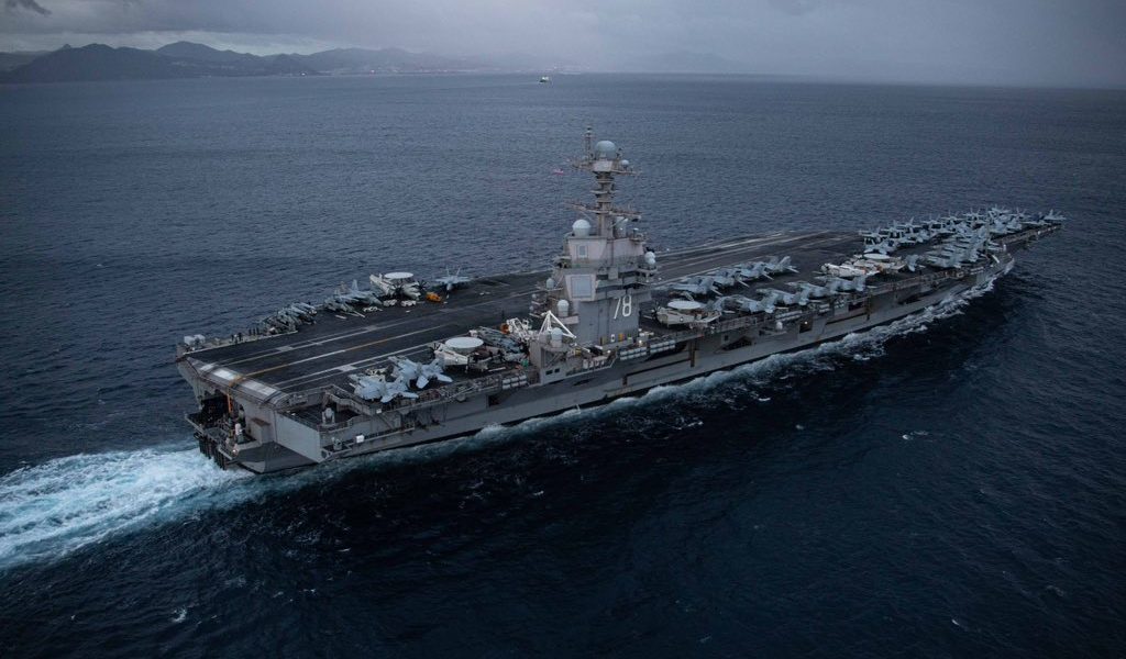 El grupo del USS Gerald R. Ford, escoltado por los destructores USS Bainbridge, USS Mahan y USS Winston Churchill, se suma a otros cuatro destructores desplegados en el mar Arábigo, tres en el estrecho de Ormuz, uno en el mar Rojo y dos buques de combate en el golfo Pérsico.