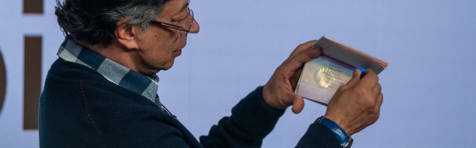 En su intervención, el mandatario mostró el documento ante los asistentes y explicó sus elementos de seguridad. “Esta es una forma de verificar la validez, todos estos hologramas de colores que muestran mariposas amarillas, diferentes marcas que los expertos ya en migración reconocerán como valiosos o no”, afirmó.