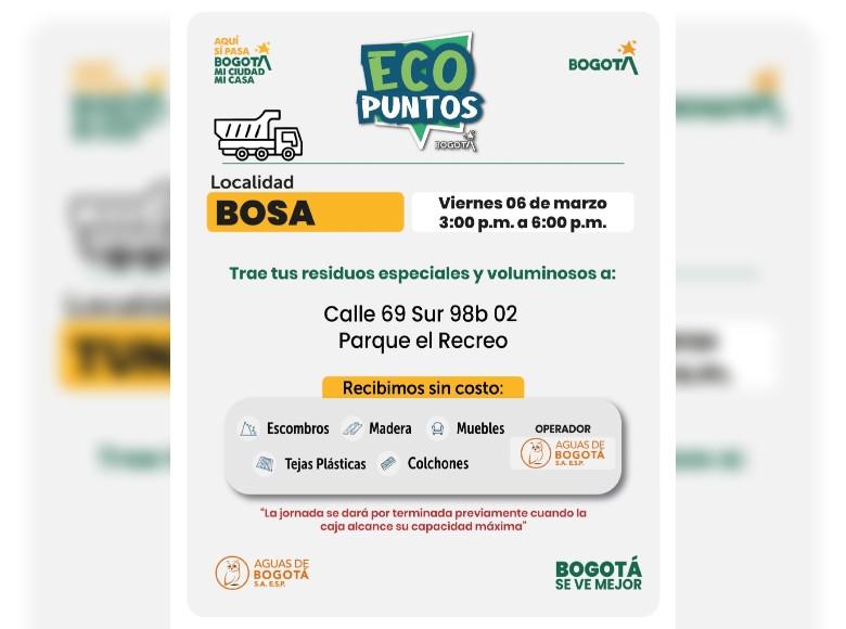 La Unidad Administrativa Especial de Servicios Públicos (UAESP) invita a la ciudadanía que tenga muebles, escombros o enseres en mal estado a llevarlos a los Ecopuntos disponibles en Bogota? que se tendrán ubicados en Suba, Barrios Unidos y más localidades, del 2 al 7 de marzo del 2026.