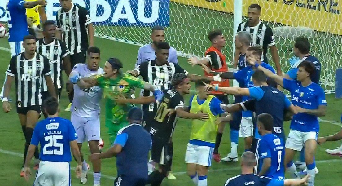 –Lo que comenzó con un choque entre el arquero del equipo brasileño Atlético Mineiro y un jugador del Cruzeiro terminó en una ‘batalla campal’ en medio del campo que incluyó puñetazos, empujones y hasta una patada voladora. En la final del Campeonato Estatal de Minas Gerais, hubo un récord de 23 expulsiones en medio de una confusión generalizada y un ‘todos contra todos’, que tuvo que ser sofocado por el personal de seguridad.