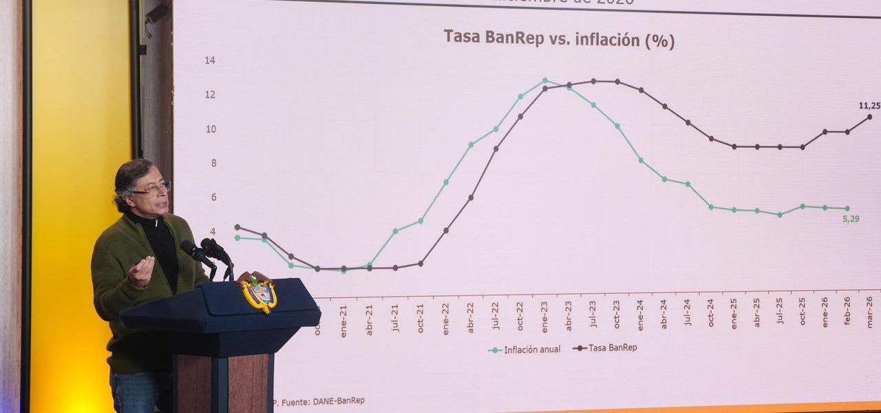 –El presidente Gustavo Petro reiteró el llamado al Banco de la República a que baje las tasas de interés al confirmar este martes las medidas que el Gobierno aplicará para mitigar el impacto generado sobre la economía por la decisión del Banco de la República de aumentar en 100 puntos la tasa de intervención y ubicarla en 11,25%.