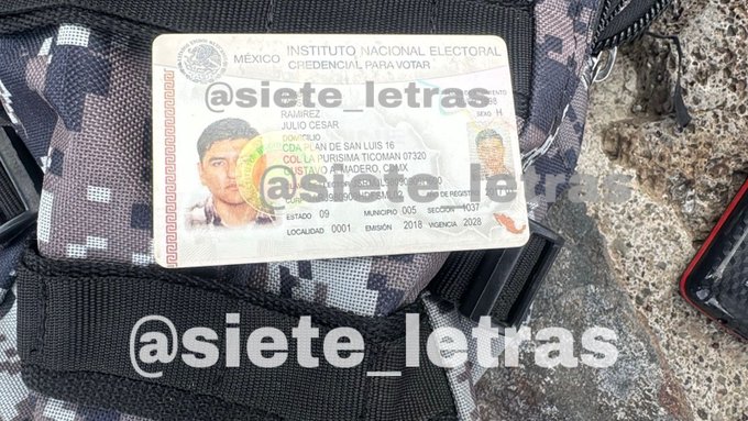 El fiscal precisó que en poder del atacante encontraron el arma de fuego, un arma punzocortante, «52 cartuchos útiles del calibre 38 especial». También, entre sus pertenencias destaca «una credencial del INE (Instituto Nacional Electoral), un teléfono de celular análogo, boletos de autobús, mochila tipo táctica, literatura, imágenes, manuscritos presuntamente relacionados con hechos violentos que se tiene conocimiento pudieron haber sucedido en los Estados Unidos en abril de 1999».