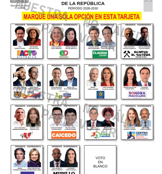 Elección presidencial en Colombia: Así quedaron ubicados en el tarjetón los 14 candidatos con sus fórmulas vicepresidenciales
