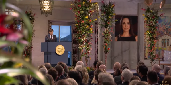 Premio Nobel de Paz: «Hoy le honramos a usted, María Corina Machado, a todos quienes esperan en la oscuridad, a todos quienes han sido detenidos y torturados, o han desaparecido»