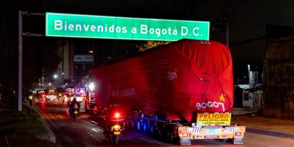 –El primer tren del Metro de Bogotá ya está en el patio taller de Bosa, al sur de la capital, tras un viaje de más de 1.200 kilómetros desde el puerto de Cartagena. Los seis vagones, a bordo de seis…